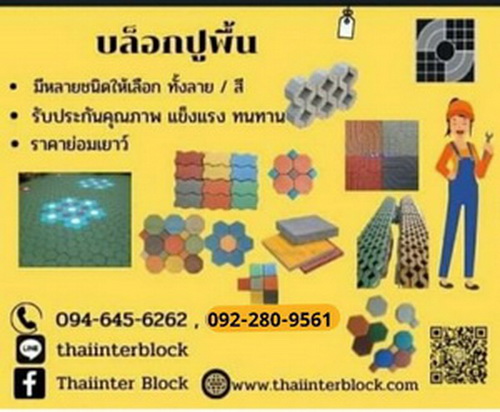 โรงงานไทยอินเตอร์บล็อก ผลิตและจำหน่าย อิฐบล็อกตัวหนอน, บล็อกแปดเหลี่ยม , บล็อกตัวไอ บล็อกหกเหลี่ยม , แผ่นทางเท้า (มีลายพัดโบก ลายหมากรุก ลายมุมซ้อน ลายสานเส้น ลายเกลียวคลื่น) บล็อกปูพื้น , บล็อกปลูกหญ้า , แผ่นทางเดิน , แผ่นทางเท้าคนตาบอด , แผ่นปูพื้นคอนกรีต , บล็อกปูถนน วัสดุกั้นขอบทางเท้า , วัสดุปูพื้น , ขอบคันหินคอนกรีต ทนทาน แข็งแรง